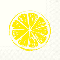 Q: What design features do these napkins have?A: The napkins feature a Lemon Bar design, showcasing a yellow lemon slice on a white background, ideal for adding a cheerful touch to your table settings.