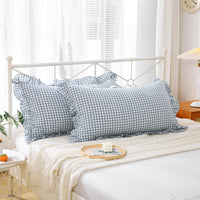 K Masaniji 2 Pack Dust Blue White Plaid Ruffle Pillow Shams Standard Size 20X26 Inches, 100% Washed Cotton Gingham Buffalo Check