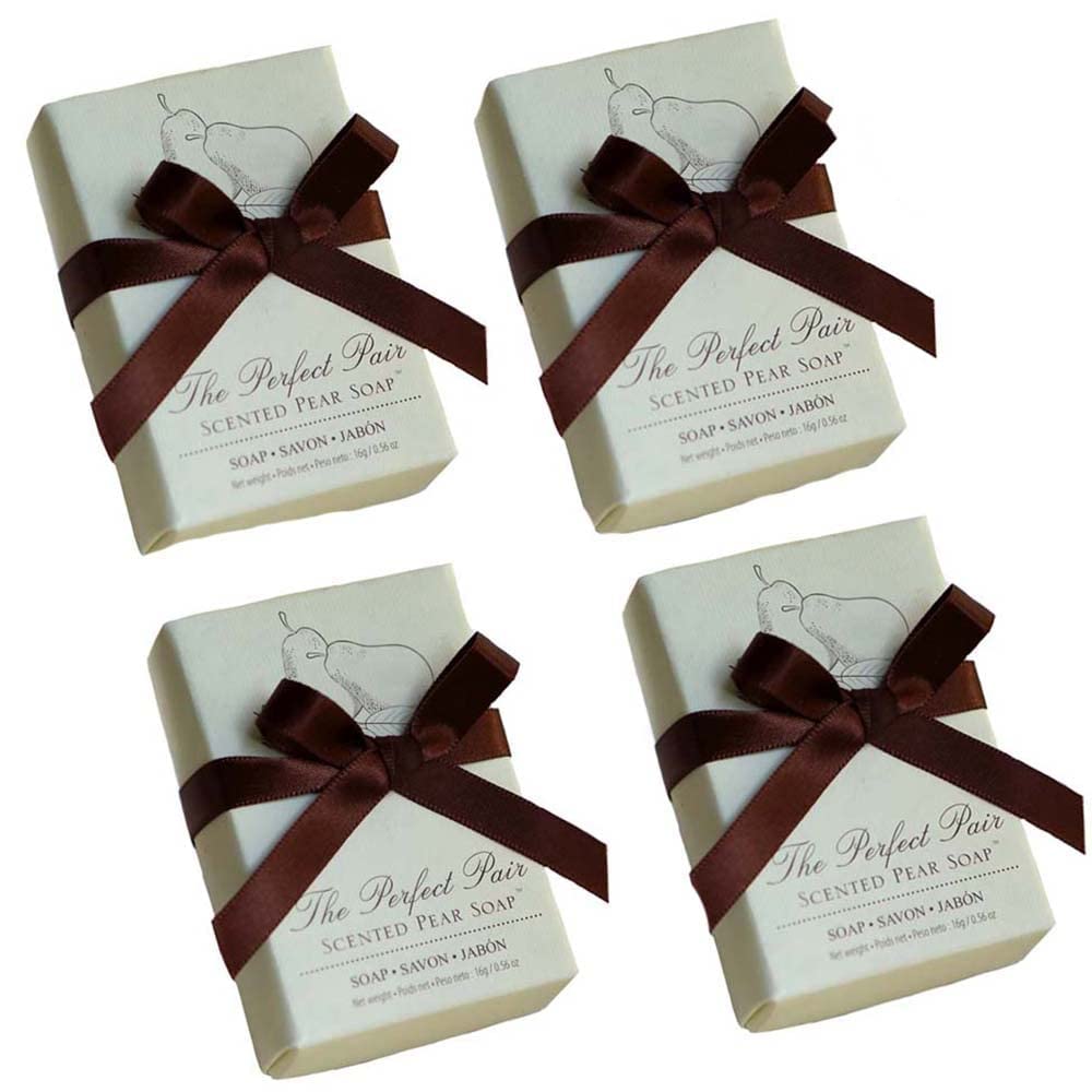 When Your Wedding Plans Call For Unmistakable Sophistication, You'Ll Find The Most Impressive Wedding Favor In A Lovely Pale Green And Brown Box That Reminds Your Guests You Are The Perfect Pair. Sweet-Scented Soap Pale Green And Speckled With Brown, Just Like A Real Pear. Sold In A Set Of 4. Soap Is Nestled In Straw-Colored Raffia. Pear Soap Measures 2 H X 1 '' W X '' Delegantly Textured Gift Box Has A Chocolate Brown Base And Pear-Colored Cover With A Graceful Drawing Of Two Pears And The Words. The Perfect Pair Scented Pear Soap. Gift Box Measures 3 '' L X 2'' W X 1 '' D And Is Tied With A Chocolate Brown, Satin Ribbon And Bow
