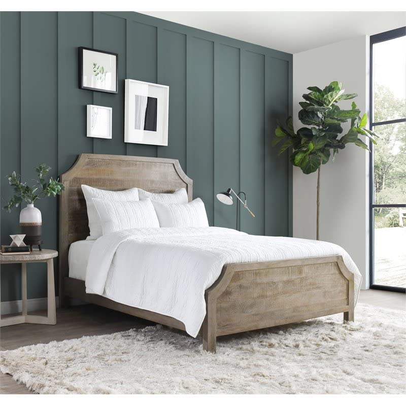 Q: How does the design of the Acme Katia Bed complement modern rustic or farmhouse decor?A: The Acme Katia Bed combines a modern silhouette with rustic elements, such as the channel-tufted gray linen upholstery and clean white frame, making it an ideal centerpiece for a modern rustic or farmhouse aesthetic.