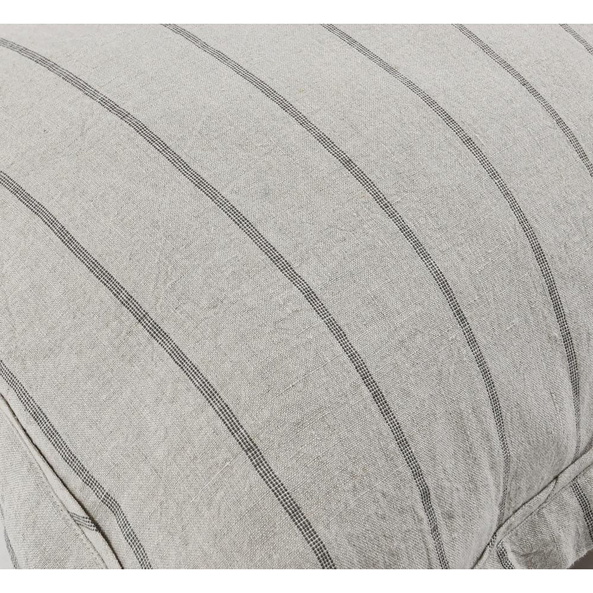 - Materials: 100% belgian flax linen, 100% solid cotton sateen back - Finish: Natural - Modern stripe design - Yarn dyed modern stripe fabric pre-washed for softness with solid cotton backing - Self flange finish with mitered corners - Machine wash in cold water tumble dry on a low heat setting.