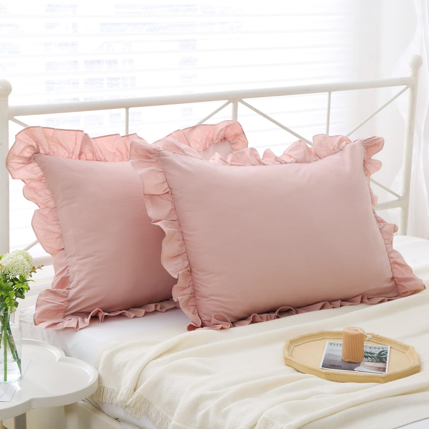 Mywinlle Ruffle Pillowcases Farmhouse Pillow Shams Standard Set Of 2,Shabby Dusty Pink Ruffled Pillow Caseswashed Cotton Pillow