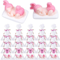 Q: What is the design of the Otuuz Baby Shower Soap favors?A: The soaps are designed to resemble a sleeping baby, and the accompanying gift tags are shaped like clothes, adding a cute and charming touch to your celebrations.