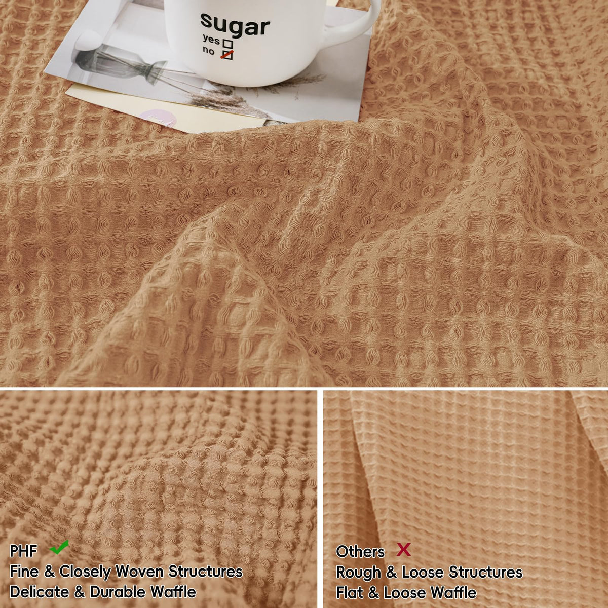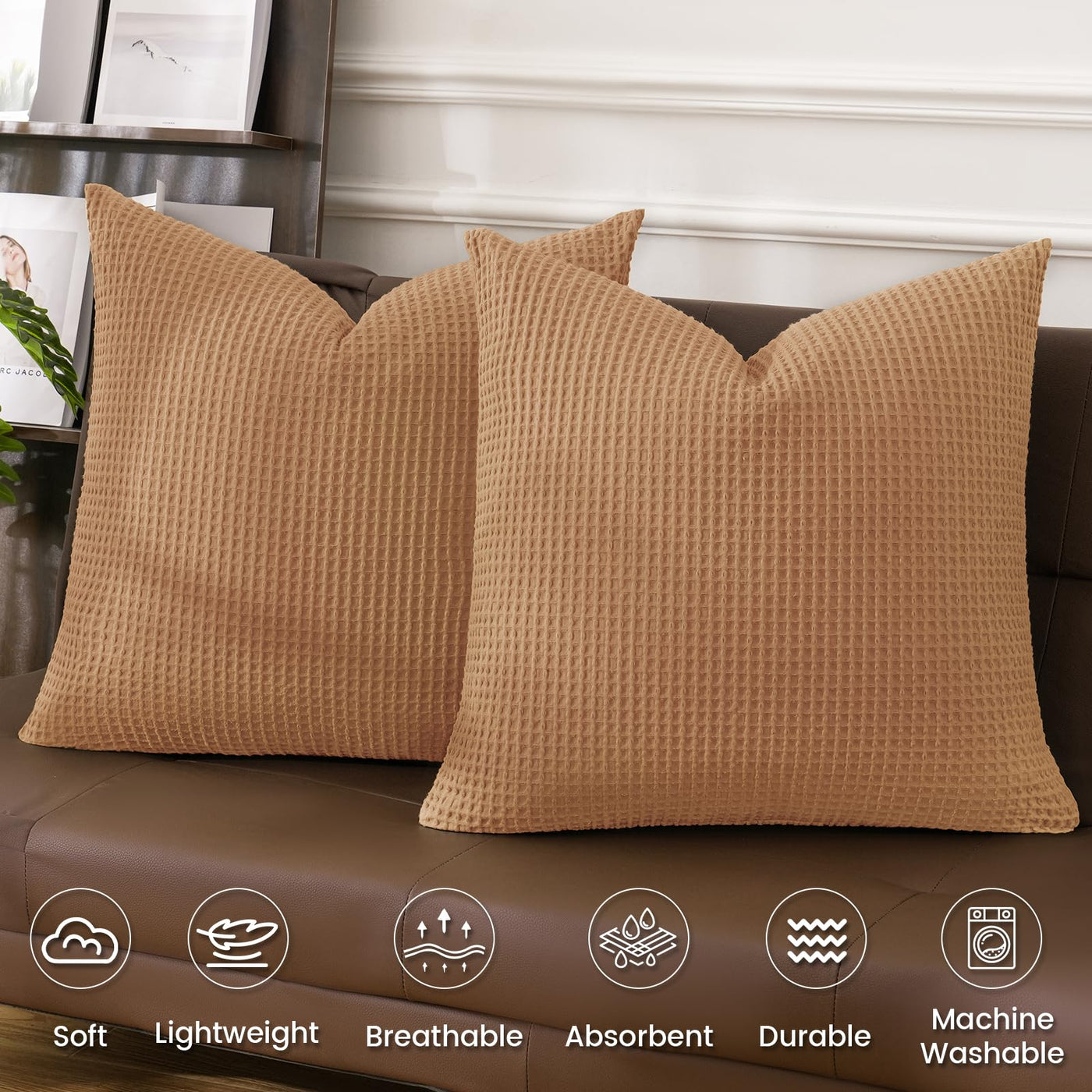 Phf 100% Cotton Waffle Weave Euro Shams 24'X24', No Filling, 2 Pack Elegant Home Decorative Euro Throw Pillow Covers For Bed Couch Sofa, Standstone