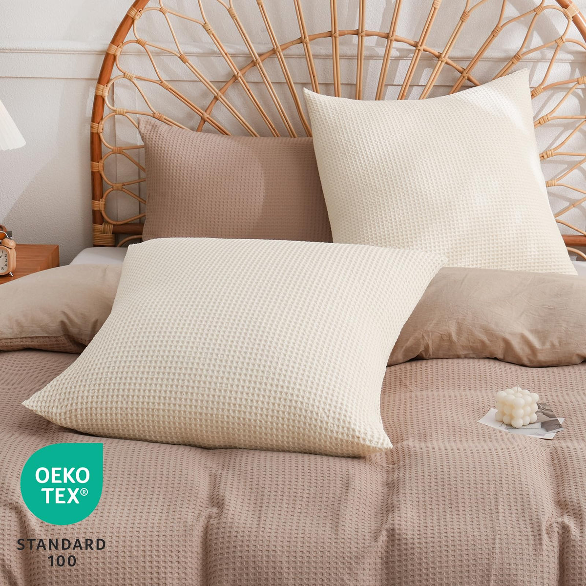 Phf 100% Cotton Waffle Weave Euro Shams 26' X 26', No Filling, 2 Pack Elegant Home Decorative Euro Throw Pillow Covers For Bed Couch Sofa, Undyed