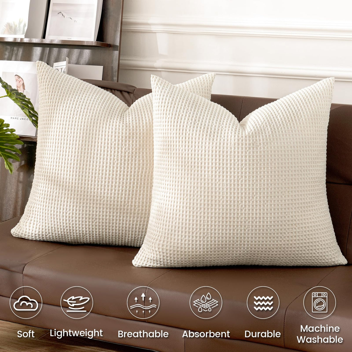 PHF 100% Cotton Waffle Weave Throw Pillow Covers, Set Of 2
