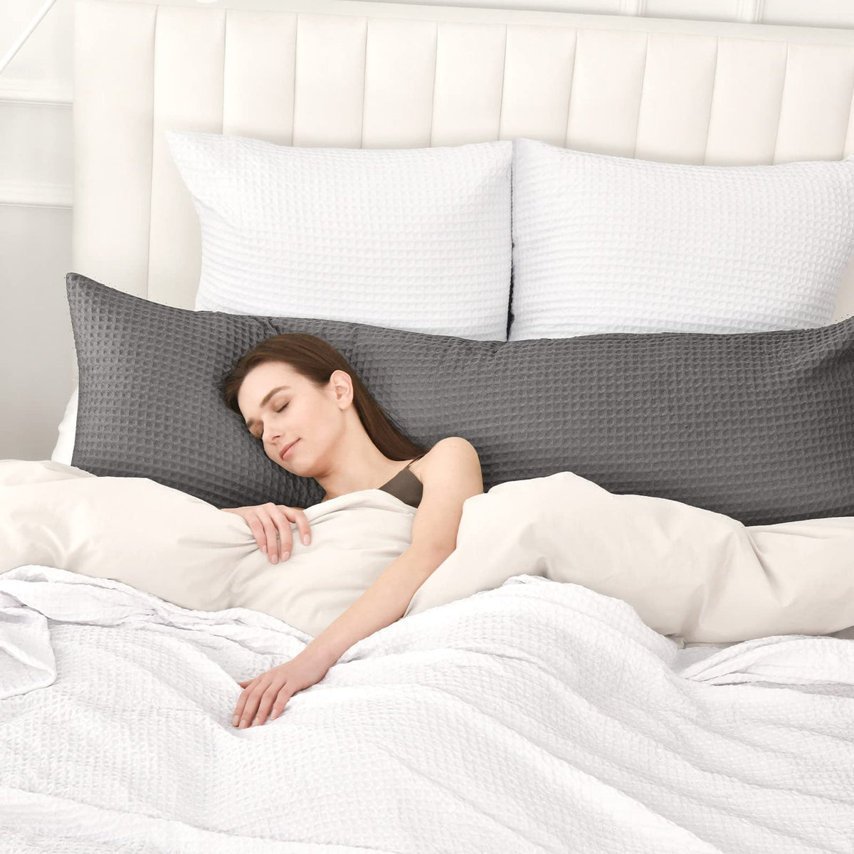Phf Ultra Soft Waffle Weave Body Pillowcase 20' X 54', No Insert, Breathable & Skin-Friendly Body Pillow Sham With Zipper, Decorative Waffle Weave Body Pillow Cover, Grey