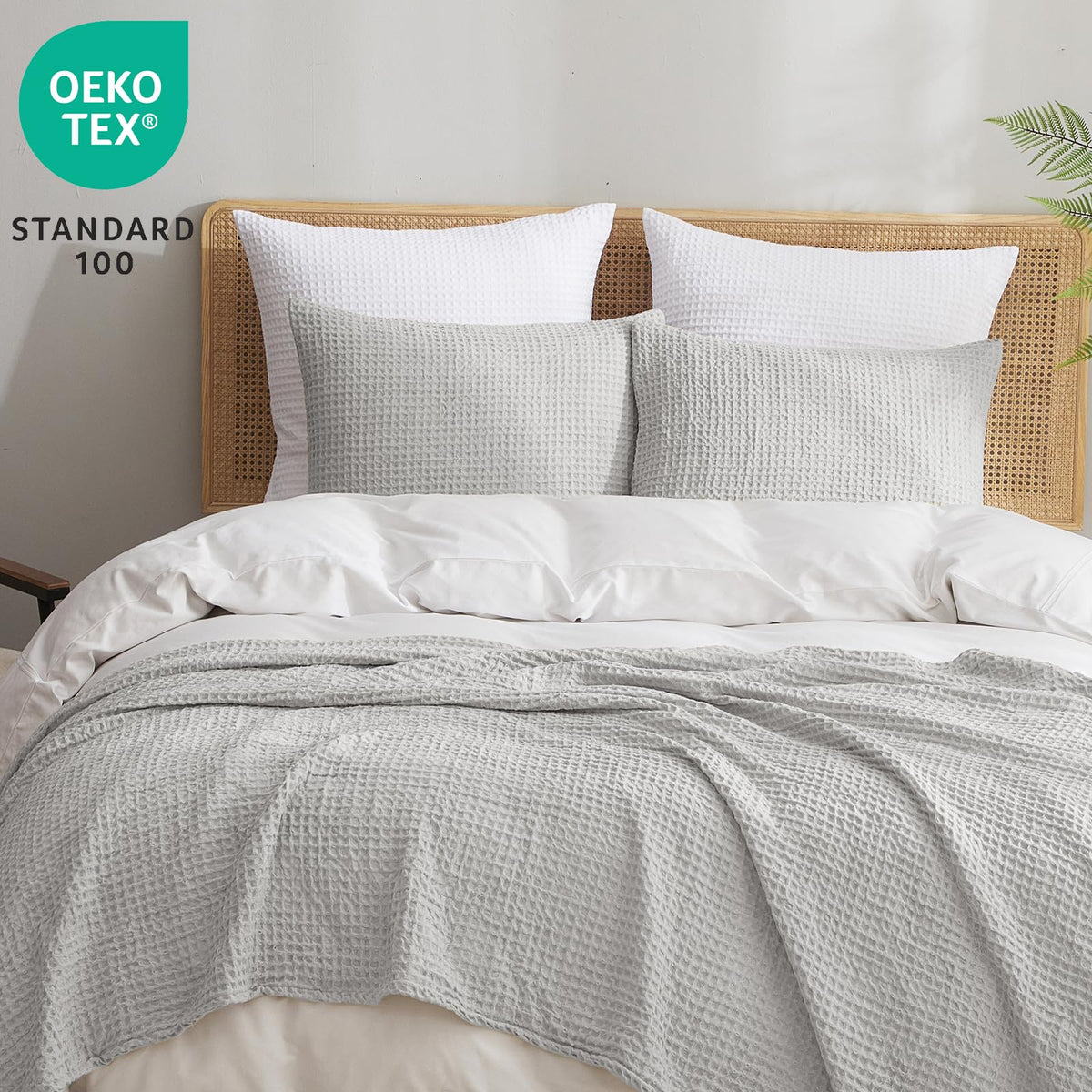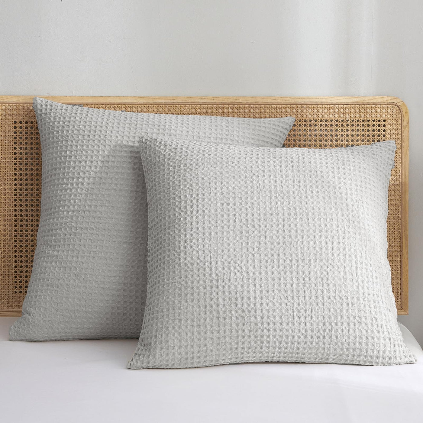 Phf Ultra Soft Waffle Weave Euro Shams Pillow Covers 26' X 26' 2 Pack, No Filling, Breathable Skin-Friendly Euro Throw Pillow Covers For Bed Couch Sofa, Light Grey