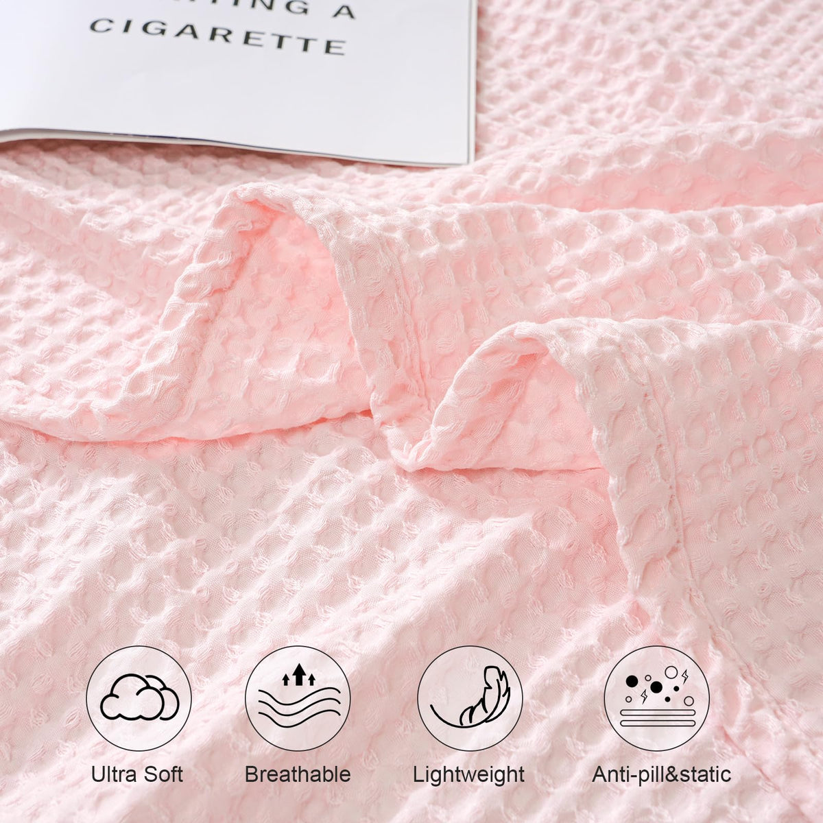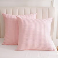 Phf Ultra Soft Waffle Weave Euro Shams Pillow Covers 26' X 26' 2 Pack, No Filling, Breathable Skin-Friendly Euro Throw Pillow Covers For Bed Couch Sofa, Pink