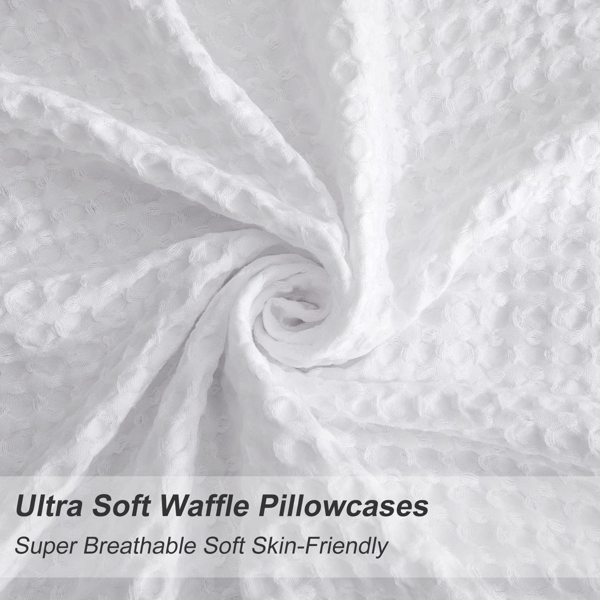 Phf Ultra Soft Waffle Weave Pillowcases King Size 20' X 36' 2 Pack, No Insert, Breathable Skin-Friendly Pillow Shams, Decorative Waffle Weave Pillow Case Covers, White