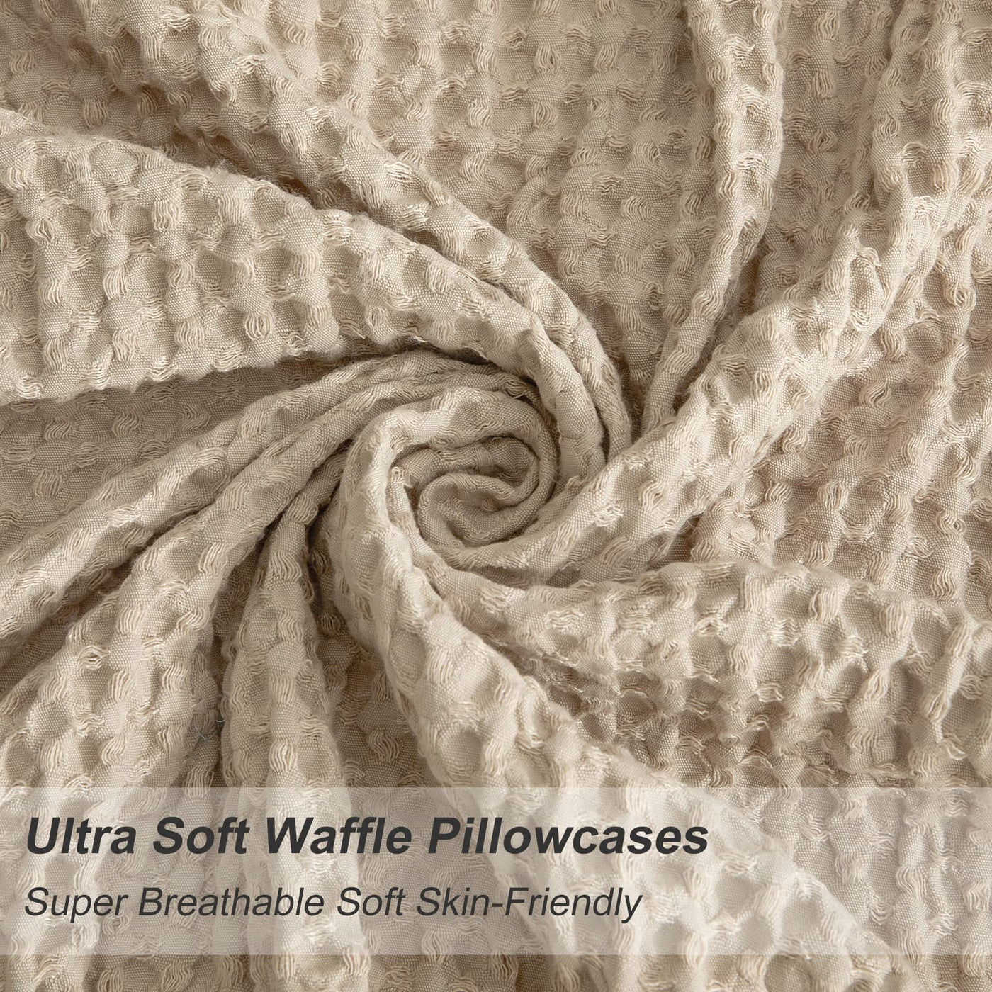 Phf Ultra Soft Waffle Weave Pillowcases Standard Size 20' X 26' 2 Pack, No Insert, Breathable Skin-Friendly Pillow Shams, Decorative Waffle Weave Pillow Case Covers, Khaki