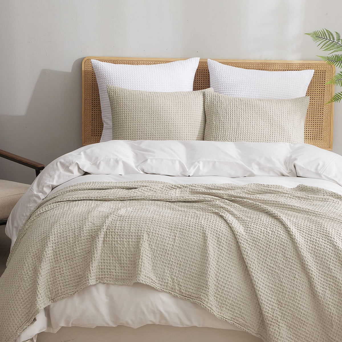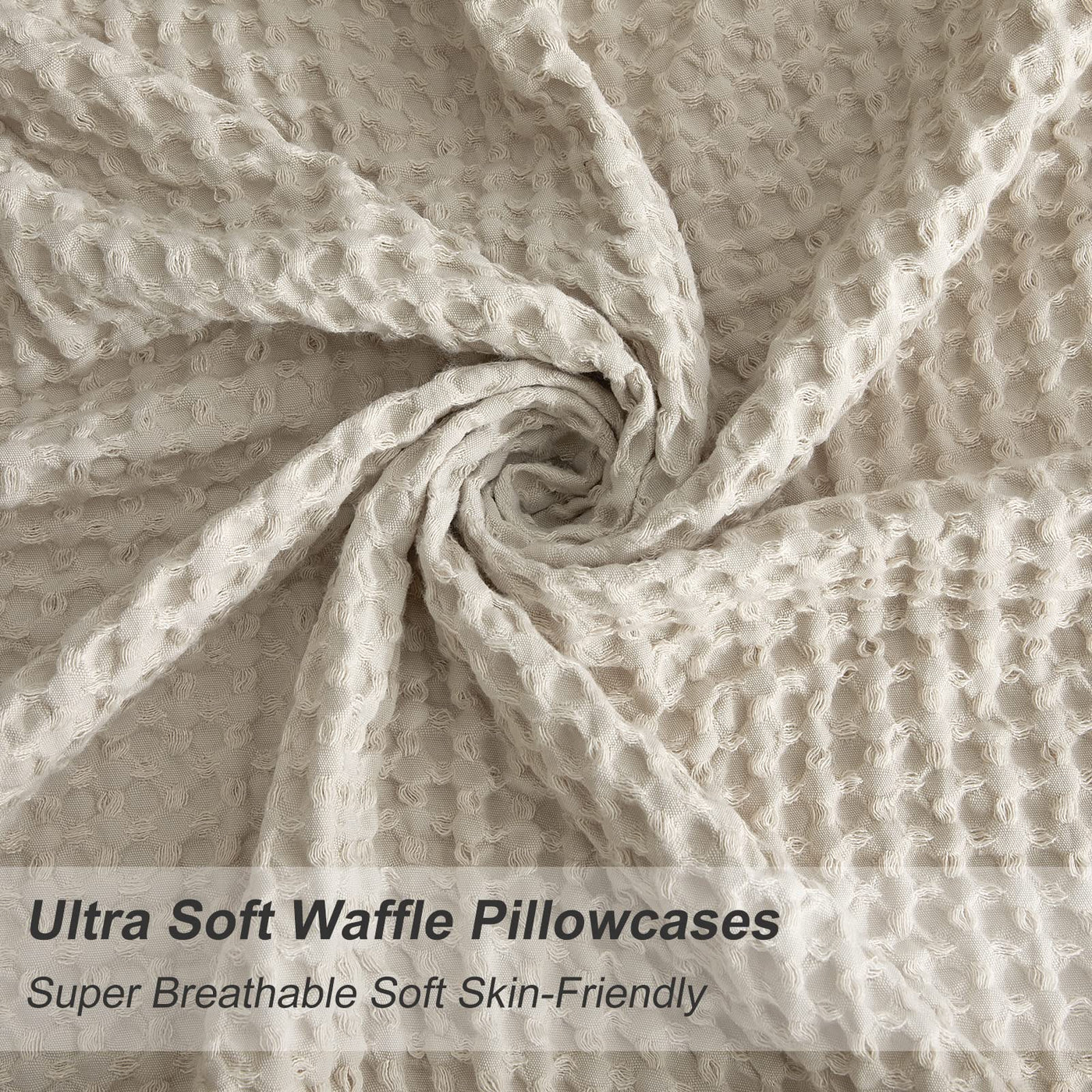 Phf Ultra Soft Waffle Weave Pillowcases Standard Size 20' X 26' 2 Pack, No Insert, Breathable Skin-Friendly Pillow Shams, Decorative Waffle Weave Pillow Case Covers, Light Khaki/Linen
