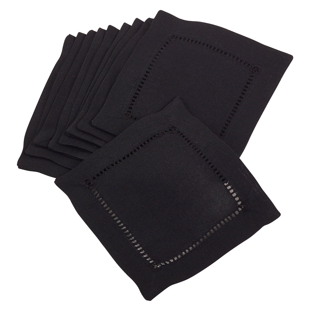 Saro Lifestyle Cocktail Napkin With Hemstitched Border (Set Of 12), Black, 6'