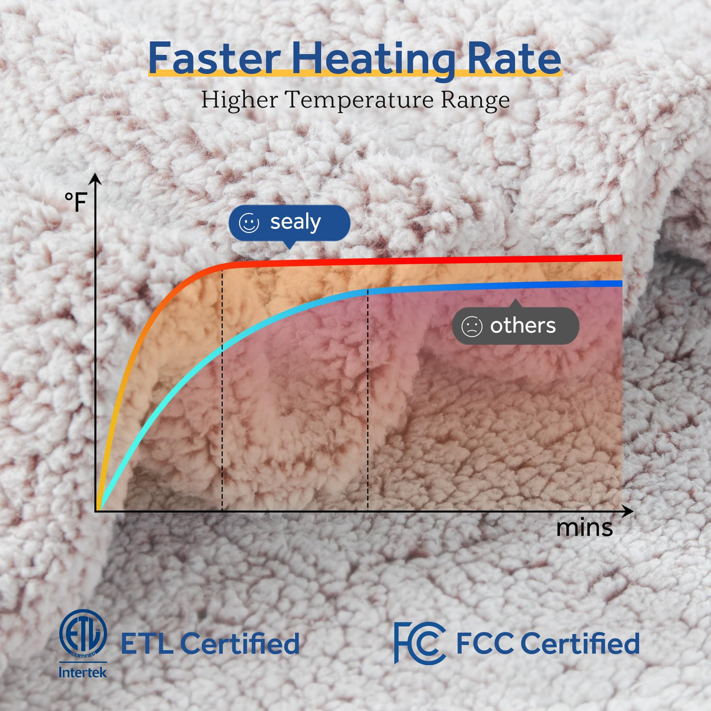 Sealy Electric Blanket Twin Size, Soft Sherpa Heated Blanket Single Control With 10 Heating Levels & 1 To 12 Hours Auto-Off Sett