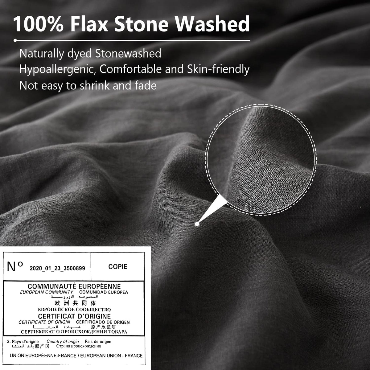 Simple&Opulence 100% Belgian Linen Pillow Shams -Set Of 2, King Size - Basic Style Breathable Pure Linen Suitable For Home - Soft And Durable With Envelope Closure (20''X 36'', Dark Grey)
