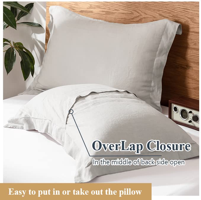 Simple&Opulence 100% Belgian Linen Pillow Shams -Set Of 2, King Size - Basic Style Breathable Pure Linen Suitable For Home - Soft And Durable With Envelope Closure (20''X 36'', Grey)