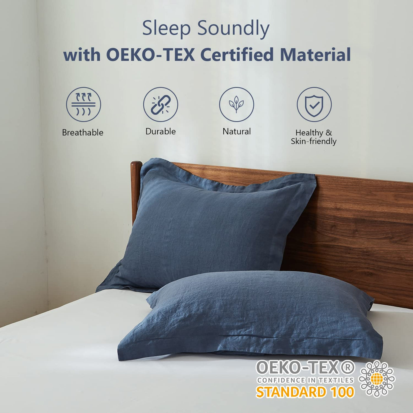 Simple&Opulence 100% Belgian Linen Pillow Shams -Set Of 2, Standard Size - Basic Style Breathable Pure Linen Suitable For Home - Soft And Durable With Envelope Closure (20''X 26'', Classic Blue)