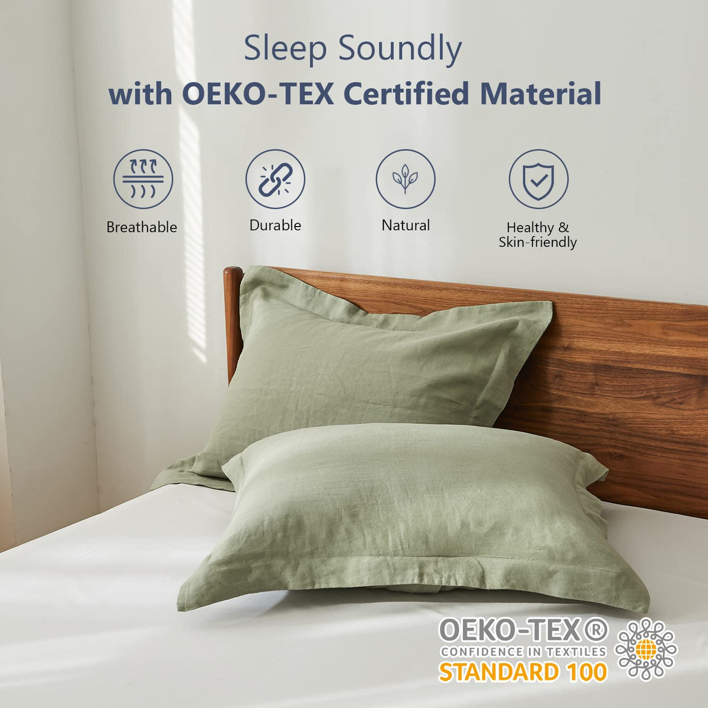 Simple&Opulence 100% Belgian Linen Pillow Shams -Set Of 2, Standard Size - Basic Style Breathable Pure Linen Suitable For Home - Soft And Durable With Envelope Closure (20''X 26'', Sage Green)