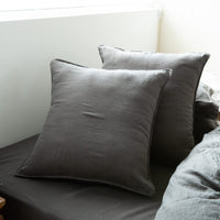 Simple&Opulence 100% Washed Linen Euro Shams Basic Style (26'' X 26'') - Pack Of 2 - Solid Color Pillow Shams Natural Flax Square Throw Pillow Covers - Dark Grey