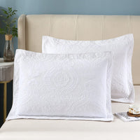 Winlife Quilted Embroidered Standard Pillow Shams White 100% Cotton Floral Decorative Pillow Sham Set Of 2 (20''X 26'', Damask,
