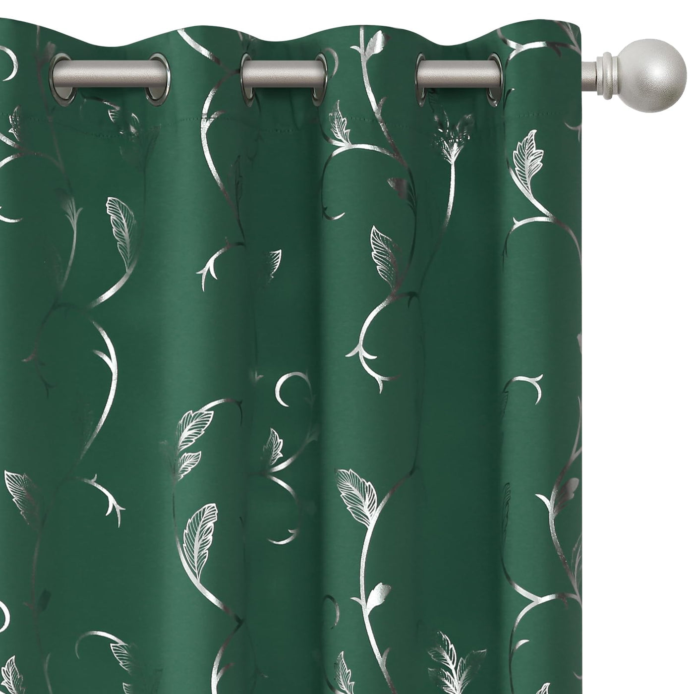 Buhua Living Room Blackout Window Curtains Silver Beautiful Flower Print Room Darkening Curtains For Bedroom Emerald-Beryl, 38W