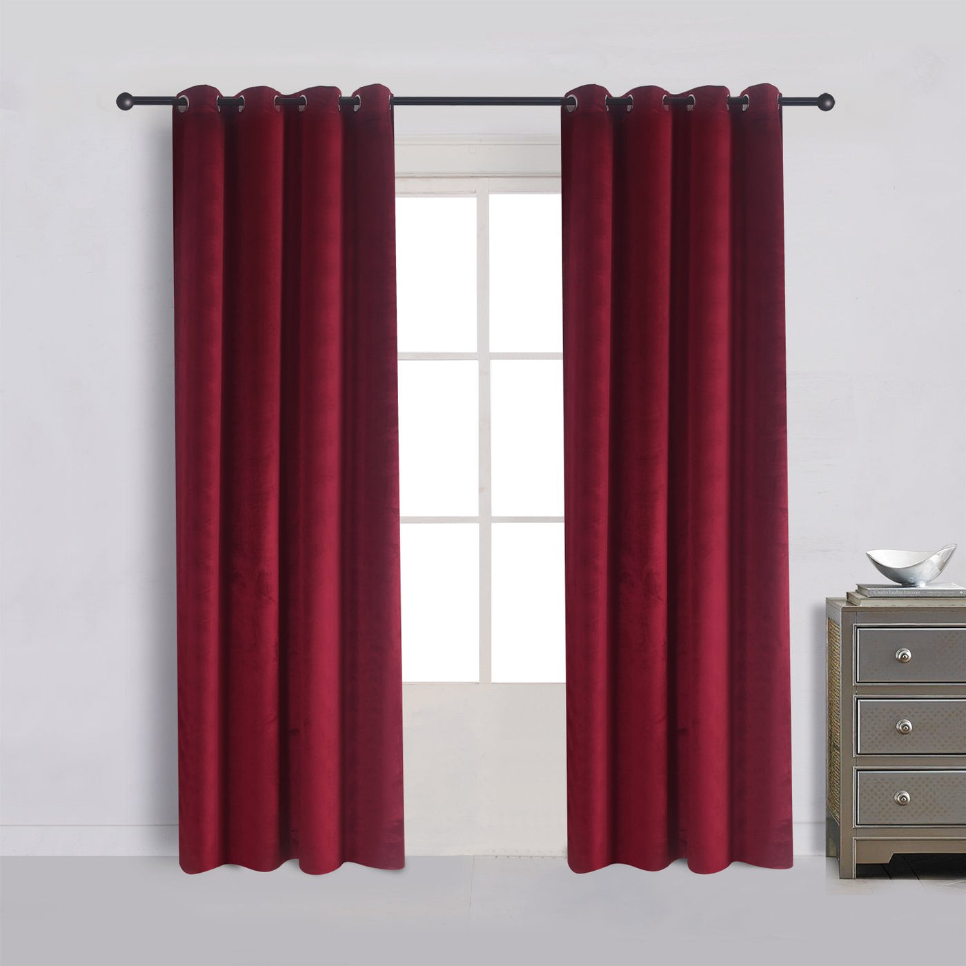 Cherry Home Set Of 2 Velvet Flannel Room Darkening Blackout Curtains Panels Drapes Grommet 52 Wide By 108 Long Burgundy For Livi