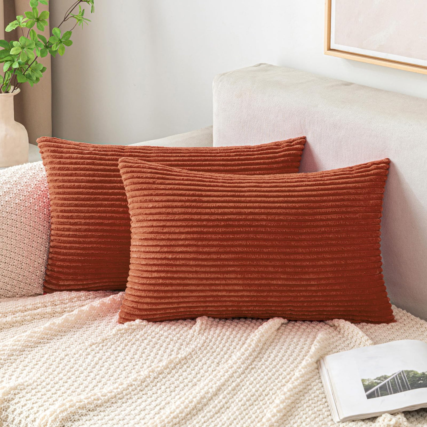 Emema Fall Terracotta Throw Pillow Covers Corduroy Decorative Soft Striped Rectangle Cushion Covers Spring Pillowcases For Couch
