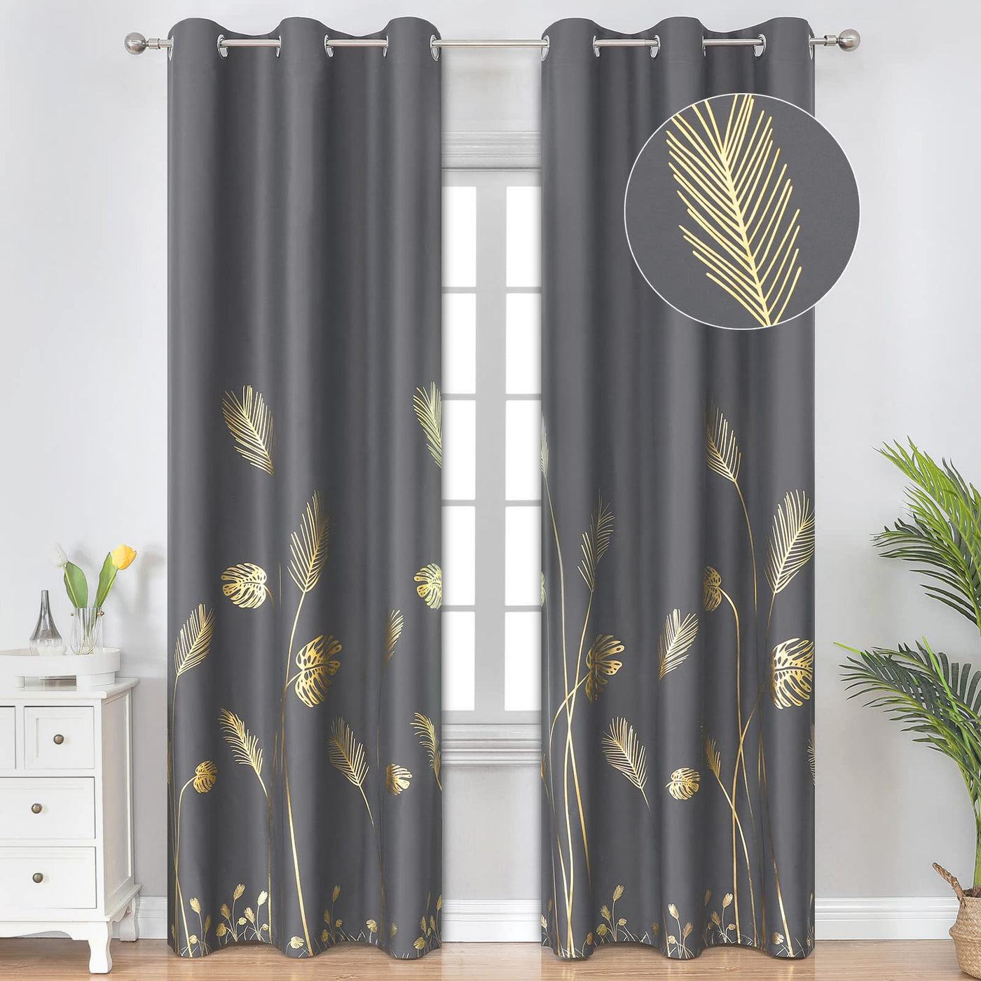 Estelar Textiler Blackout Curtains Palm Banana Leaf Printed Curtains For Bedroom Living Room Best Chioce For Your Home Decoration Estelar Textiler Unique Design Palm Banana Leaf Blackout Curtains Filter Light Whether Day Or Night, Offer You A Better Afternoon Nap Or Morning Sleep-In. These Elegant Palm Banana Leaf Black Out Curtain Panels Are Suitable For Decorating Your Bedroom, Living Room, Dining Room, Kids Room, Nursery, Kitchen, Office Or Other Public Place. Blackout Performance High Quality Polyester Fabric And Innovative Triple Weave Technology Were Used For The Thermal Insulated Blackout Curtains. Which Not Only Effectively Blocks Out 85%-99% Of The Sunlight And Uv Rays, But Also Functions As An Energy-Saving Barrier. Balance Room Temperature By Insulating Against Summer Heat And Winter Chill, Also Save Your Energy Bills. Ready Made 2 Blackout Curtain Panels With 2 Tassel Ropes Per Package. Care Instructions Wash Separately Under 86 F, On Gentle Cycle. Do Not Bleach, Do Not Tumble Dry, Low Temperature Ironing Before Hanging Up. Ps: Our Product Pictures Are Real And Shot By Professionals. However, Due To Differences In Computer Monitors Display, There Can Be Color Variations Between The Actual Product And Your Screen.