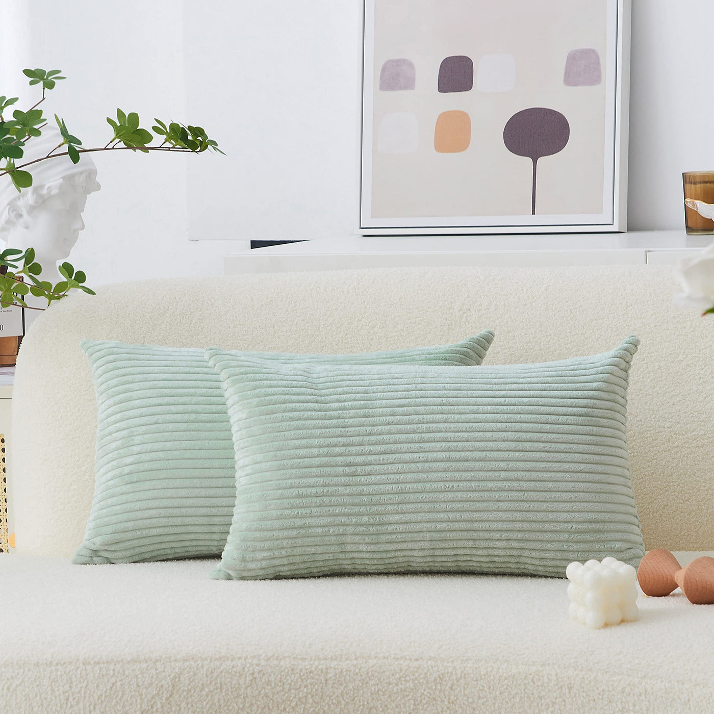 Home Brilliant Sage Lumbar Pillow Cover 12X20 Corduroy Plush Velvet Oblong Decorative Throw Pillow Covers For Rectangle Pillowca