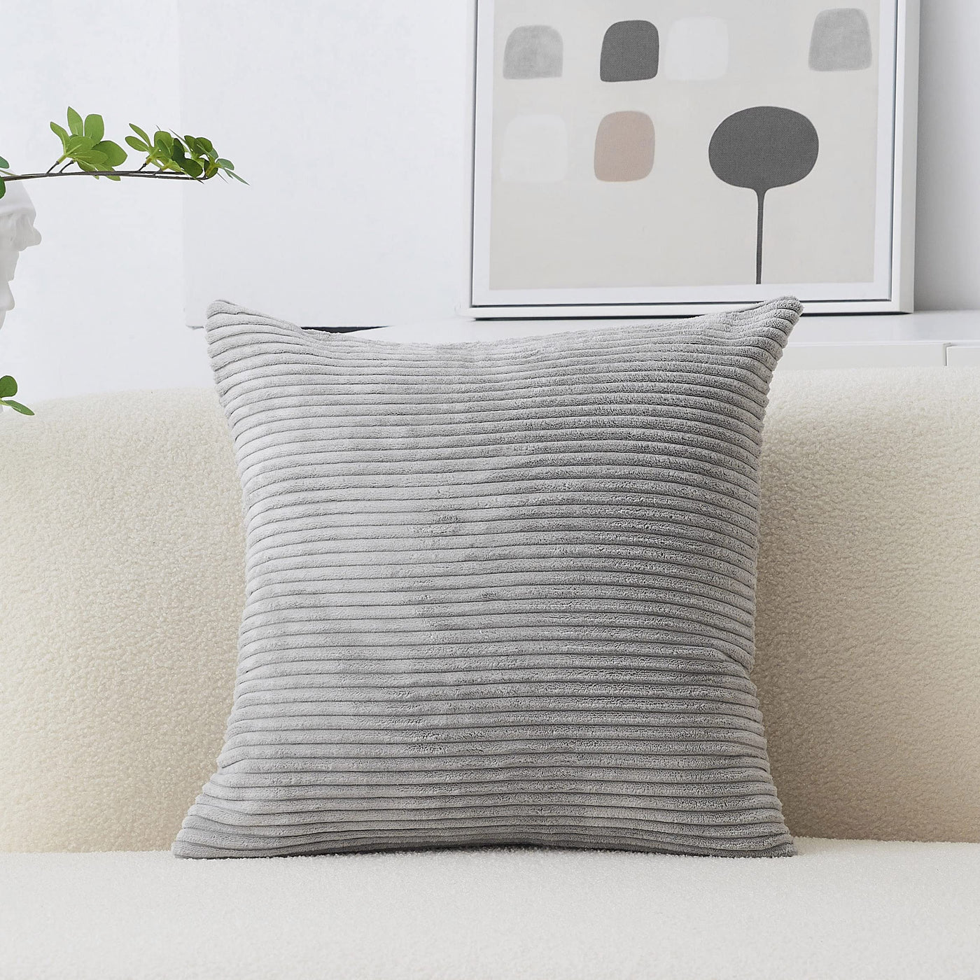 Home Brilliant Throw Pillow Cover 20X20 Soft Plush Striped Pillow Cover Neutral Grey Corduroy Pillow Case For Chair Living Room