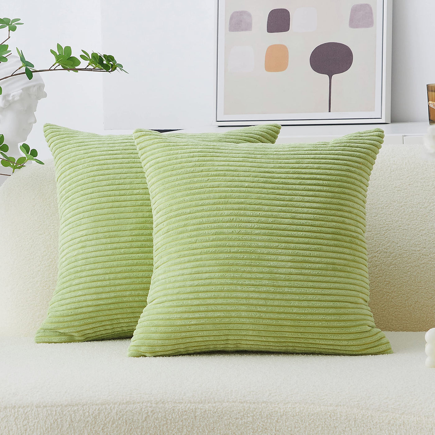 Home Brilliant Throw Pillow Covers 18X18 Set Of 2 Super Soft Corduroy Striped Pillow Covers Summer Decor Cushion Covers For Couc