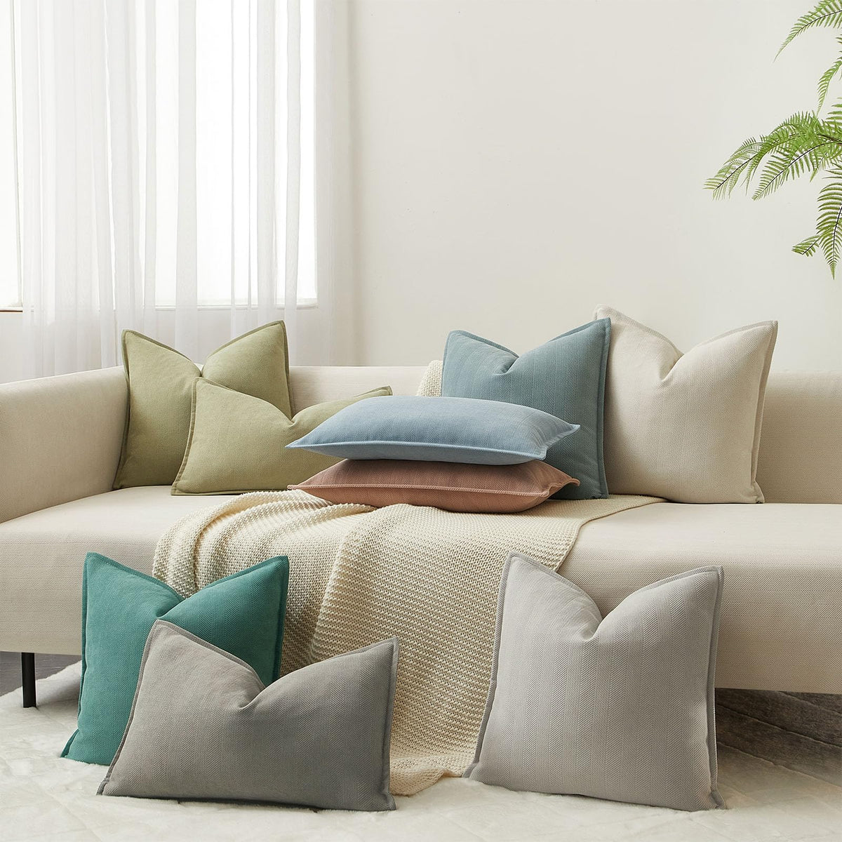 Q: What decor styles do the JUSPURBET throw pillow covers complement?A: The timeless herringbone pattern of the JUSPURBET throw pillow covers adds sophistication to various decor styles, from modern to traditional, making them a versatile addition to any living space.