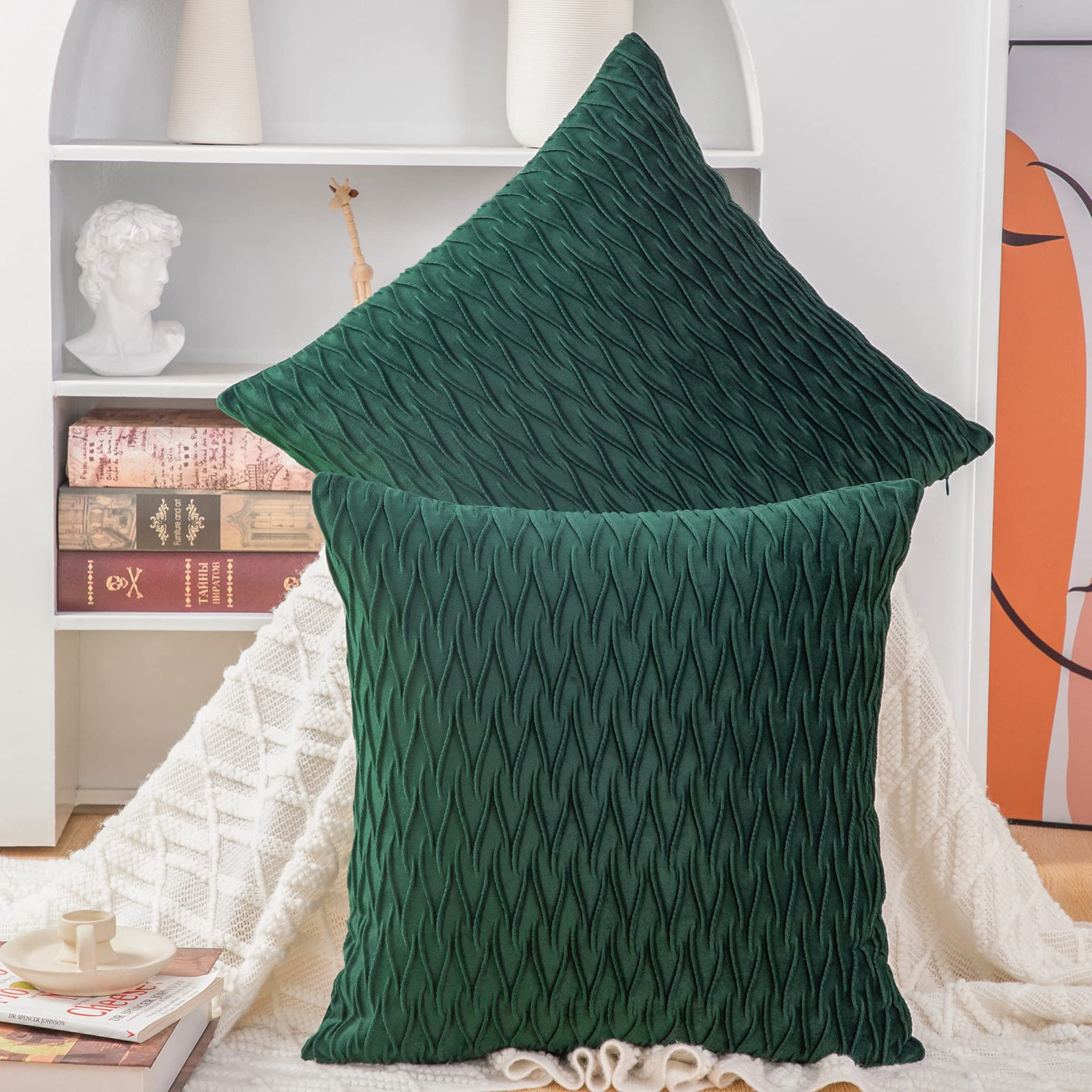 Madizz Set Of 2 Super Soft Velvet Decorative Throw Pillow Covers 26X26 Inch Army Green Square With Texture Luxury Style Cushion