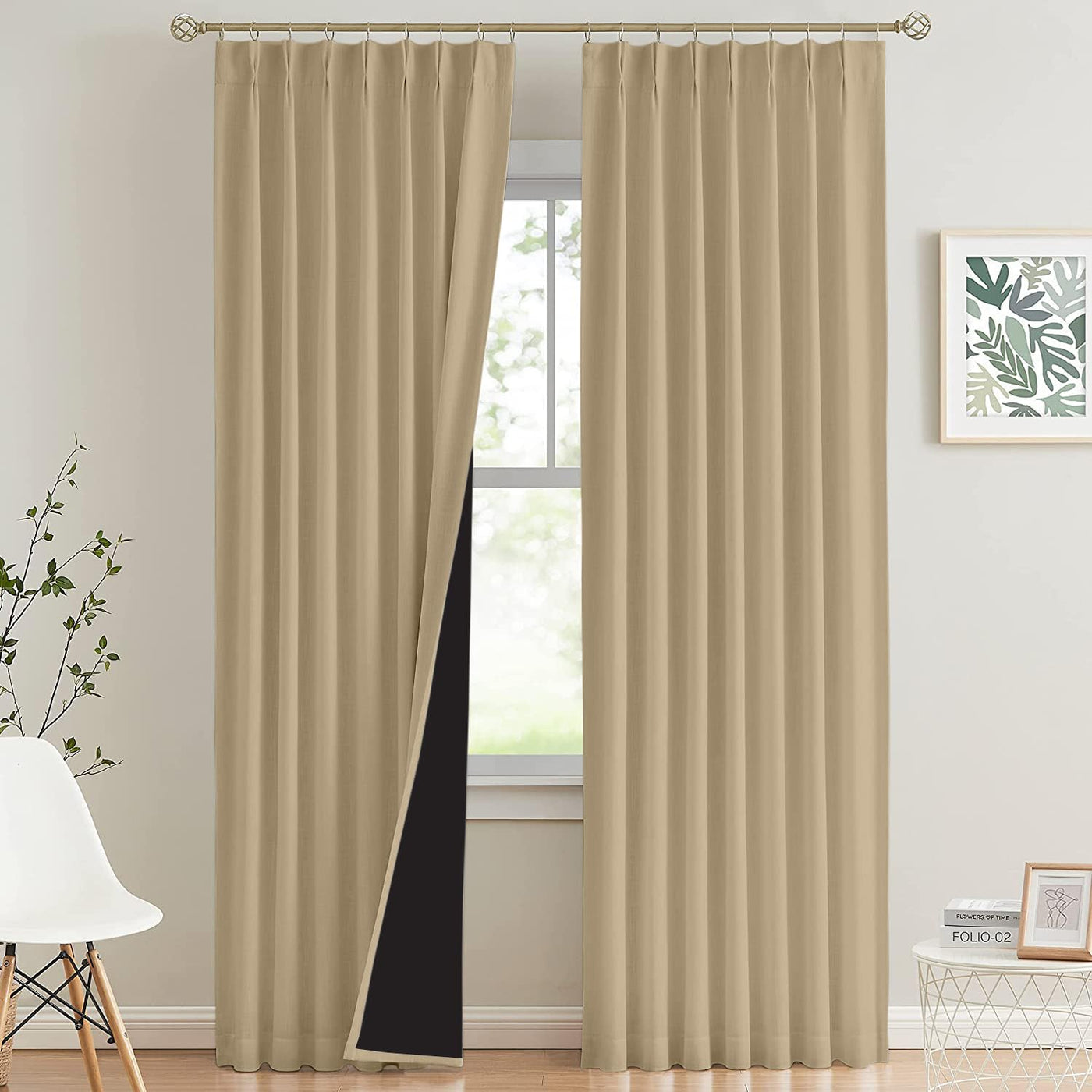 Magic Drapes Pinch Pleated Curtains With Tiebacks & Hooks 100% Blackout Thermal Insulated Room Darkening Window Curtains For Din