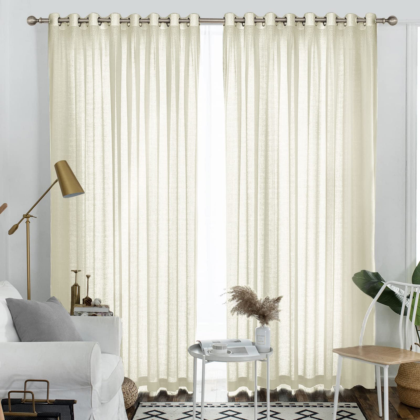 Melodieux Semi Sheer Curtains 108 Inches Long For Living Room, Bedroom Extra Long Linen Look Rustic Grommet Cream Yellow Patio D