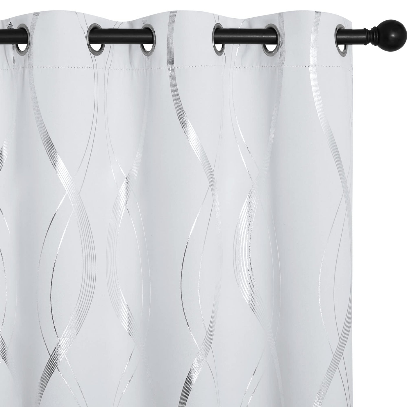 Nicetown Greyish White Blackout Curtains For Bedroom, Microfiber Noise Reducing Thermal Insulated Wave Line Foil Print Design Bl
