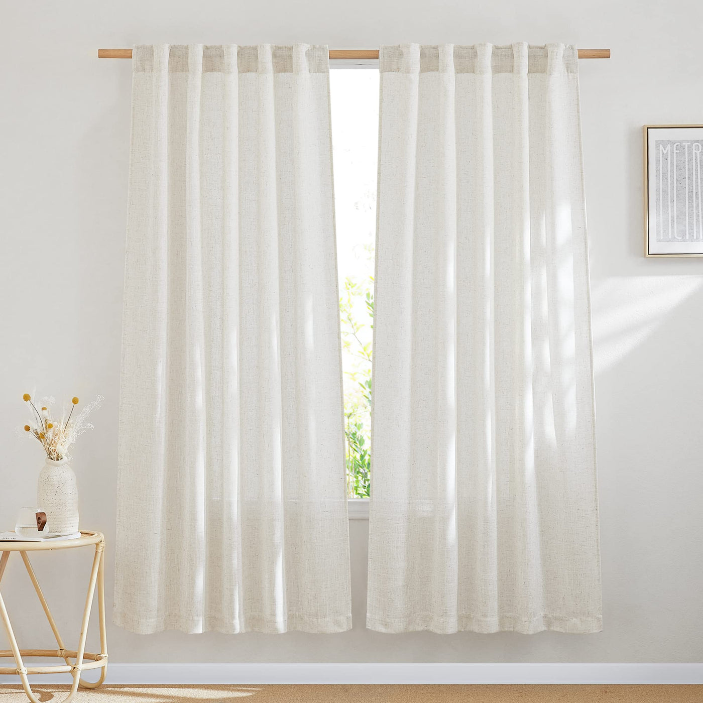 Nicetown Natural Linen Curtains 72 Inches Length, Rod Pocket & Back Tab Privacy With Light Filtering Drapes Flax Linen Blend Win