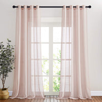 Nicetown Pink Curtains Linen Sheer Textured, Grommet Semi Sheer Linen Weave Window Drapes Privacy With Light Filtering For Girls