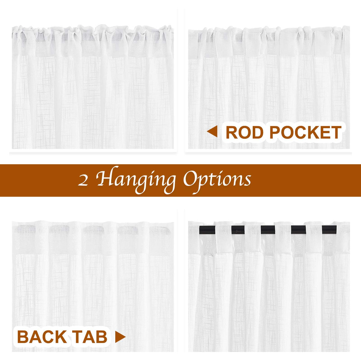 NICETOWN White 80 Semi-Sheer Faux Linen Doorway Curtains, Rod Pocket & Back Tab, 34W x 80L, 2 Panels for Bedroom/Living Room