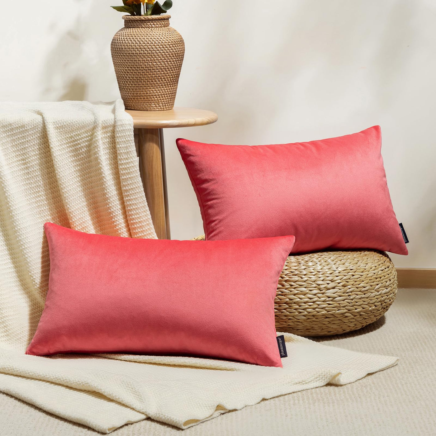 Phantoscope Pack Of 2 Velvet Decorative Throw Decorative Pillow Cover Soft Solid Square Cushion Case For Couch Magenta 12 X 20 I