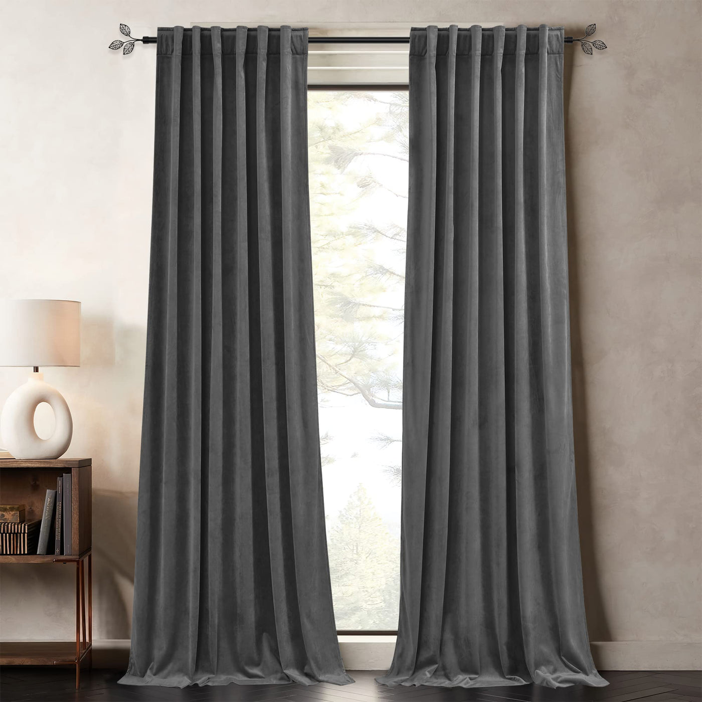 Pony Dance Dim Gray Blackout Velvet Curtains 96 Inches Long - Block Light Thermal Insulated Velour Rod Pocket Drapes For Bedroom