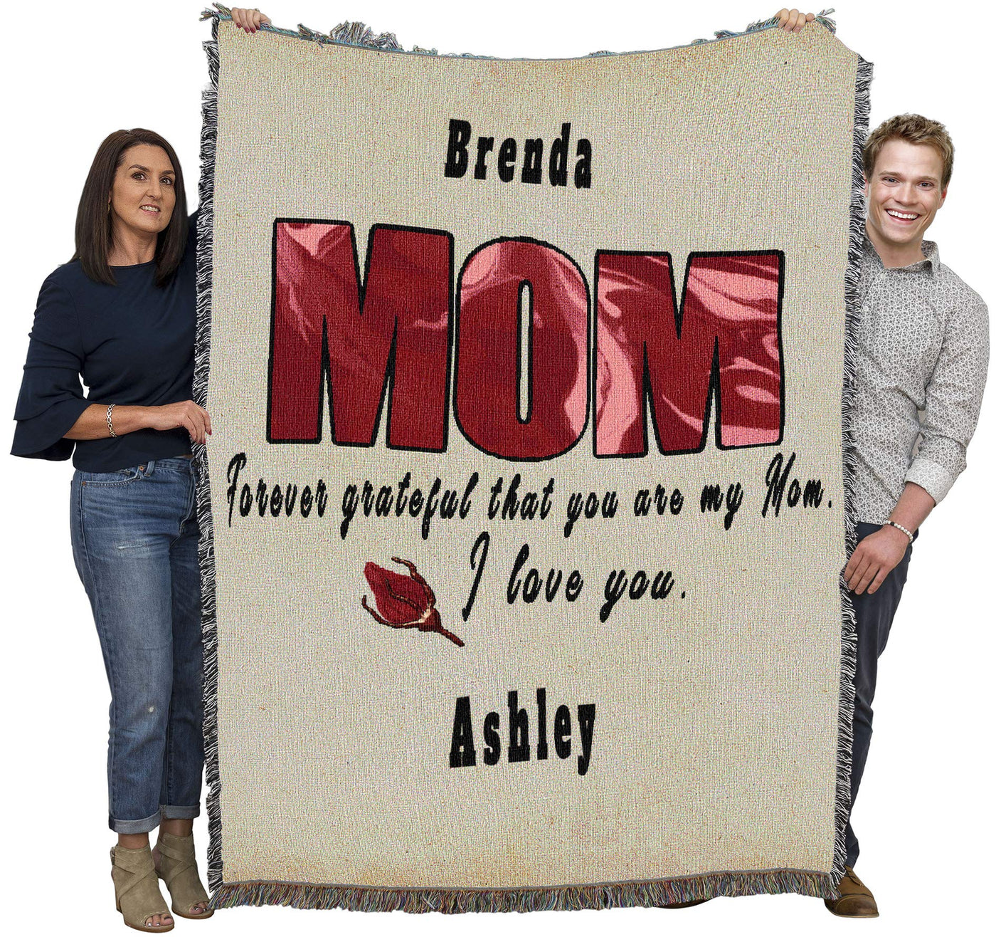 Pure Country Weavers Forever Grateful You Are My Mom Blanket - Personalized - Custom Gift Tapestry Throw Woven From Cotton - Mad
