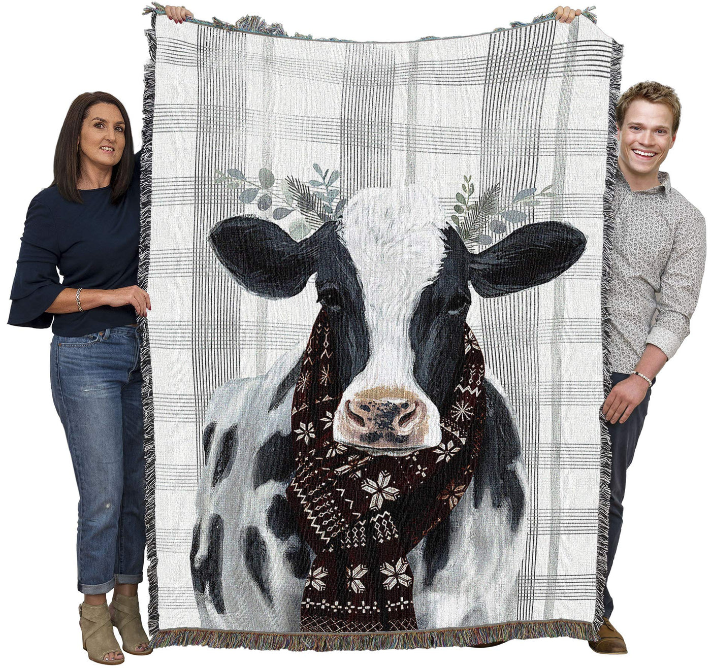 Pure Country Weavers Yuletide Cow Blanket By Victoria Borges - Cute Funny Gift Tapestry Throw Woven From Cotton - Made In The Us