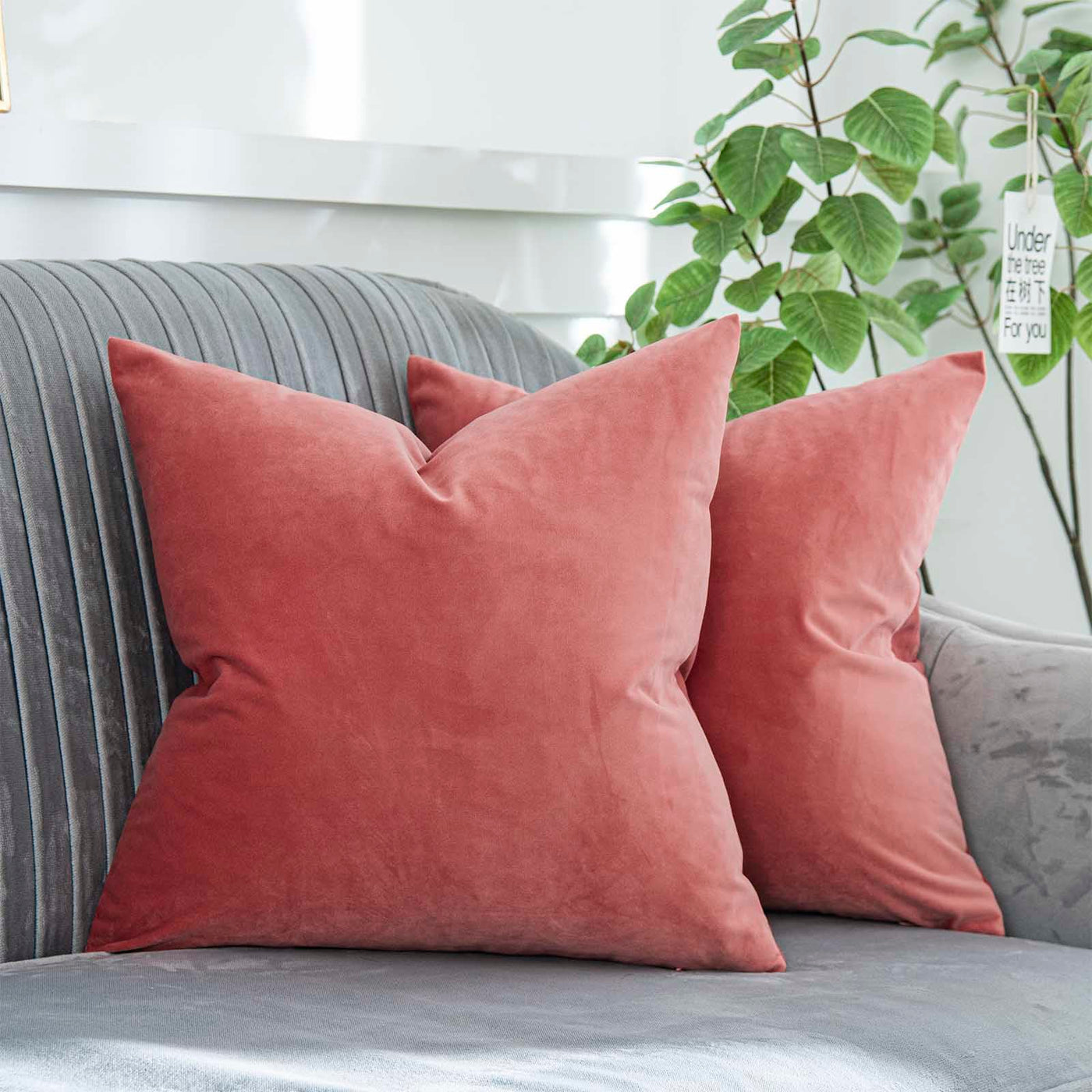 Quafoo Coral Decorative Velvet Throw Pillow Covers 24X24 Inch Set Of 2 With Zipper Luxury Soft Solid Square Cushion Covers Case