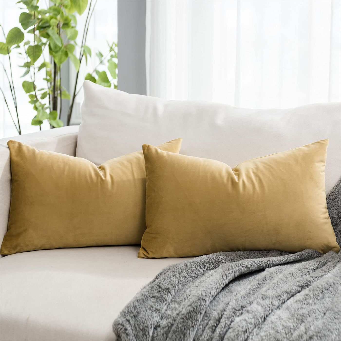 Quafoo Khaki Decorative Lumbar Velvet Throw Pillow Covers 16X24 Inch Set Of 2 With Zipper Luxury Soft Solid Rectangle Cushion Co