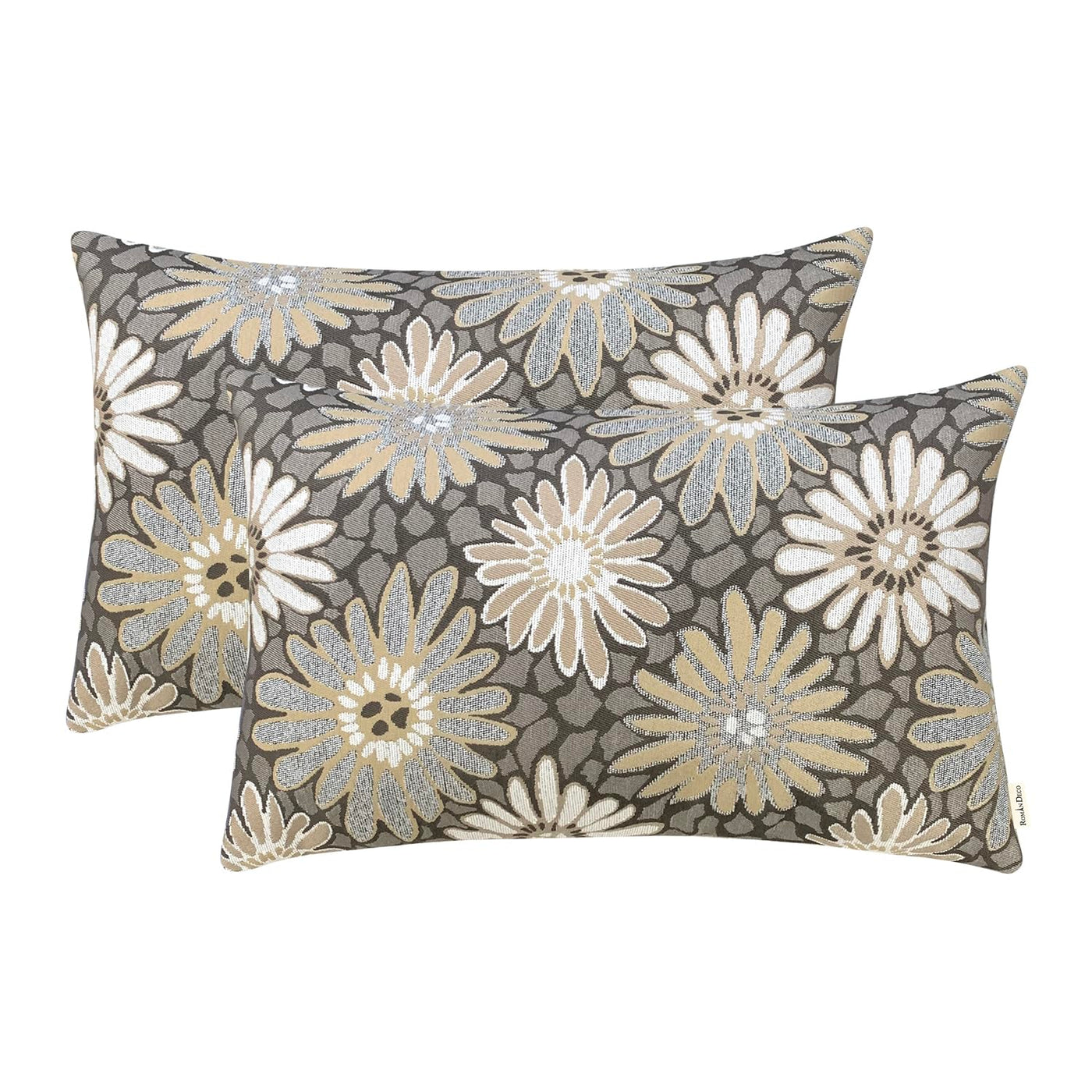 Romandeco Jacquard Floral Decorative Throw Pillow Covers For Couch Set Of 2, 12X20 Inches, Brown