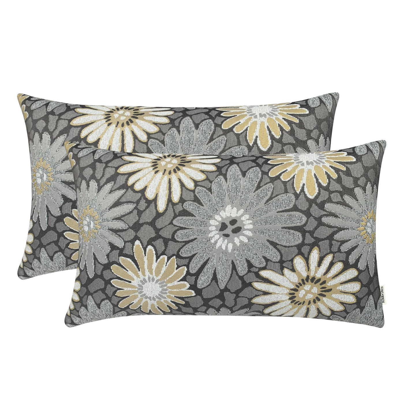 Romandeco Jacquard Floral Decorative Throw Pillow Covers For Couch Set Of 2, 12X20 Inches, Grey