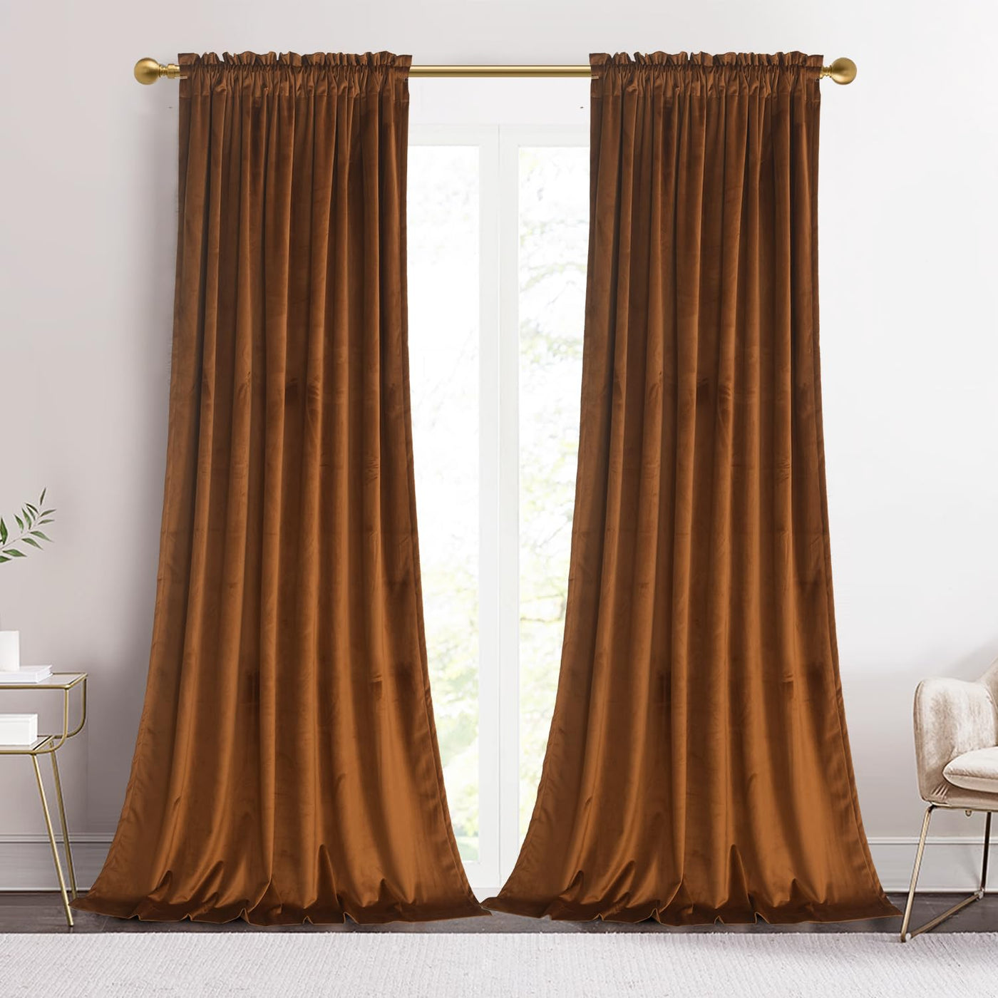 Roslynwood 108-Inch Length Brown Velvet Curtains For Bedroom, Rod Pocket Heavy Thick Blackout Window Panels Christmas Holiday Ho