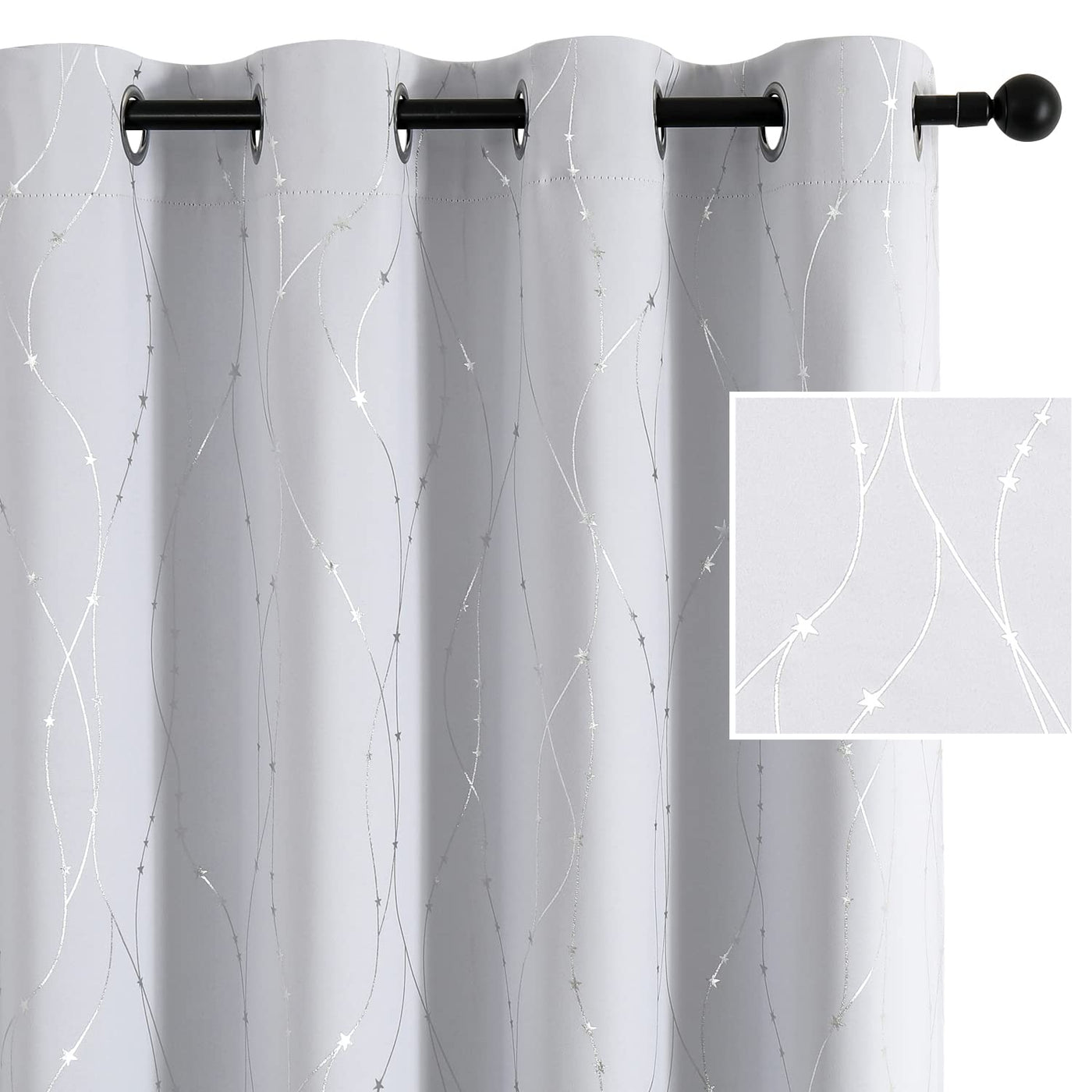 Smile Weaver Window Curtains Perfectly Matches Your Windows And Provides Utmost Privacy Features Innovative Triple-Weave Polyester Fabric With Thermal Insulation Properties Which Blocks Out Sunlight And Harmful Uv Rays, Reduces Outside Noise Each Blackout Curtain Panel Has Exclusive Hot Stamping (Silver) Meteor Star Pattern, Perfect For Decoration Perfect Curtains Help Maximize Privacy Made Of High Quality Durable 100% Polyester Fabric, Our Blackout Curtains Are Super Smooth, Soft And Free From Chemical Smell. The Curtains Are Made Using A Triple Weave Innovative Production Method, And They Help Maximize Privacy And Reduce Some Noisy. Perfect Thermal Curtains For Bedroom, Living Room, Kids Room And Nursery Room.Creating Energy-Saving Insulating Barrier Against Heat And Cold, Keep Room Cooler In Summer And Warmer In Winter Strengthened Stitching Ensures There Is No Loose Threads Or Uneven Hems/Edges Each 52 Inch Curtain Has 8 Metal Grommets On Top, 1.6 Inch Inner Diameter And 2.4 Inch External Diameter Grommets Holes Are Large Enough For Most Rods In The Market Eco-Friendly, No Chemical Coating, No Formaldehyde Suitable For Bedroom, Living Room, Dining Room, Kids Room, Office Or Other Public Place They Keep A Bedroom Exceptionally Dark And Perfect For Afternoon Naps Or Morning Sleep-Ins Protect Your Furniture, Floors And Artwork From The Ravages Of The Sun Care Instruction Hand Wash Or Dry Cleaning Is Suggested Water Temperature Below 90 Degrees Fahrenheit No Bleach, Tumble Dry Low, Low-Temperature Ironing If Needed Note 1. Please Allow A Little Bit Of Size Deviation Due To Manual Measurement. 2. Due To Differences In Computer Monitors, Please Allow A Little Bit Of Color Difference Between The Picture And The Object.