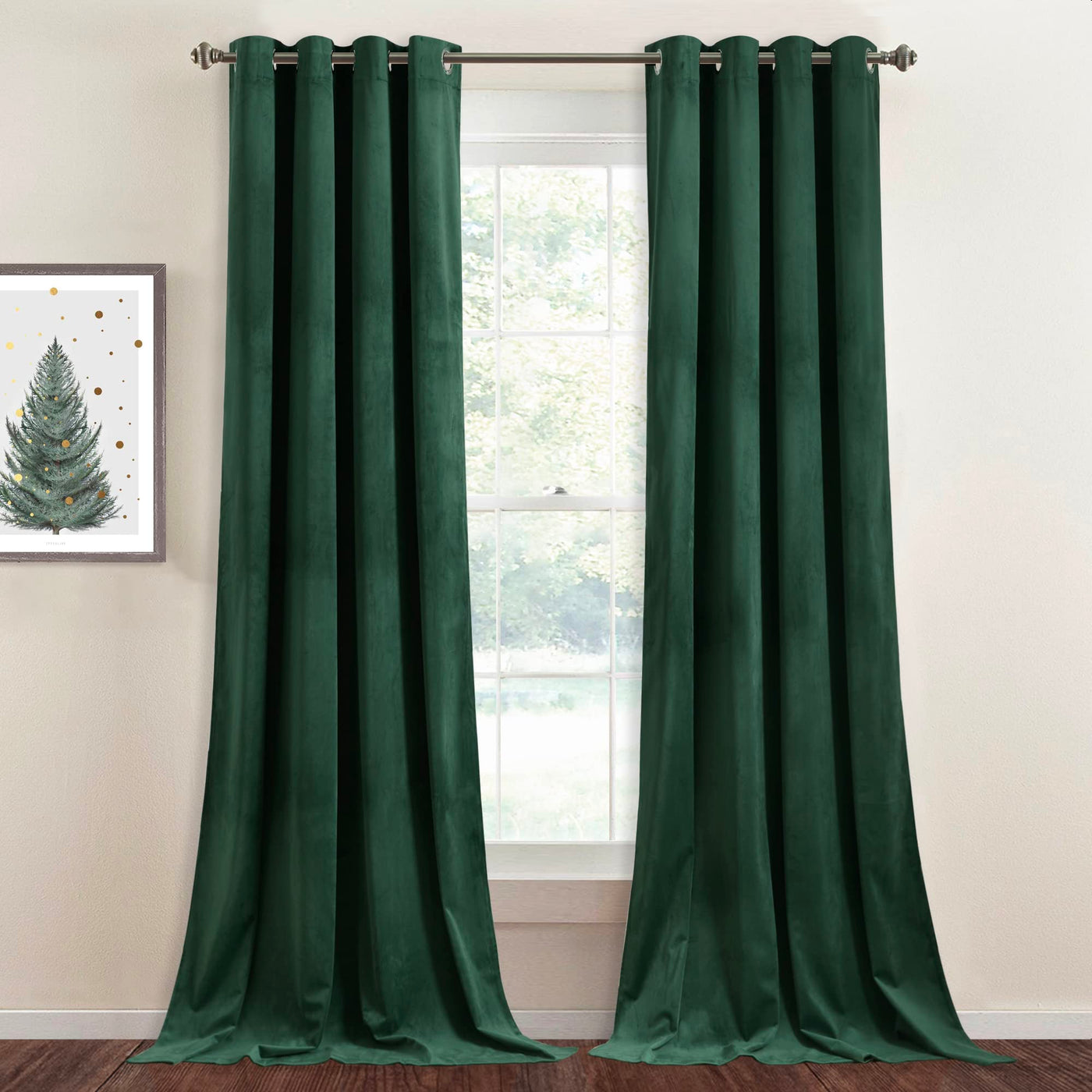 Stangh Dark Green Velvet Curtains - Super Soft Blackout Panels Holiday Decor Christmas Backdrop Curtains, Grommet Thermal Insula